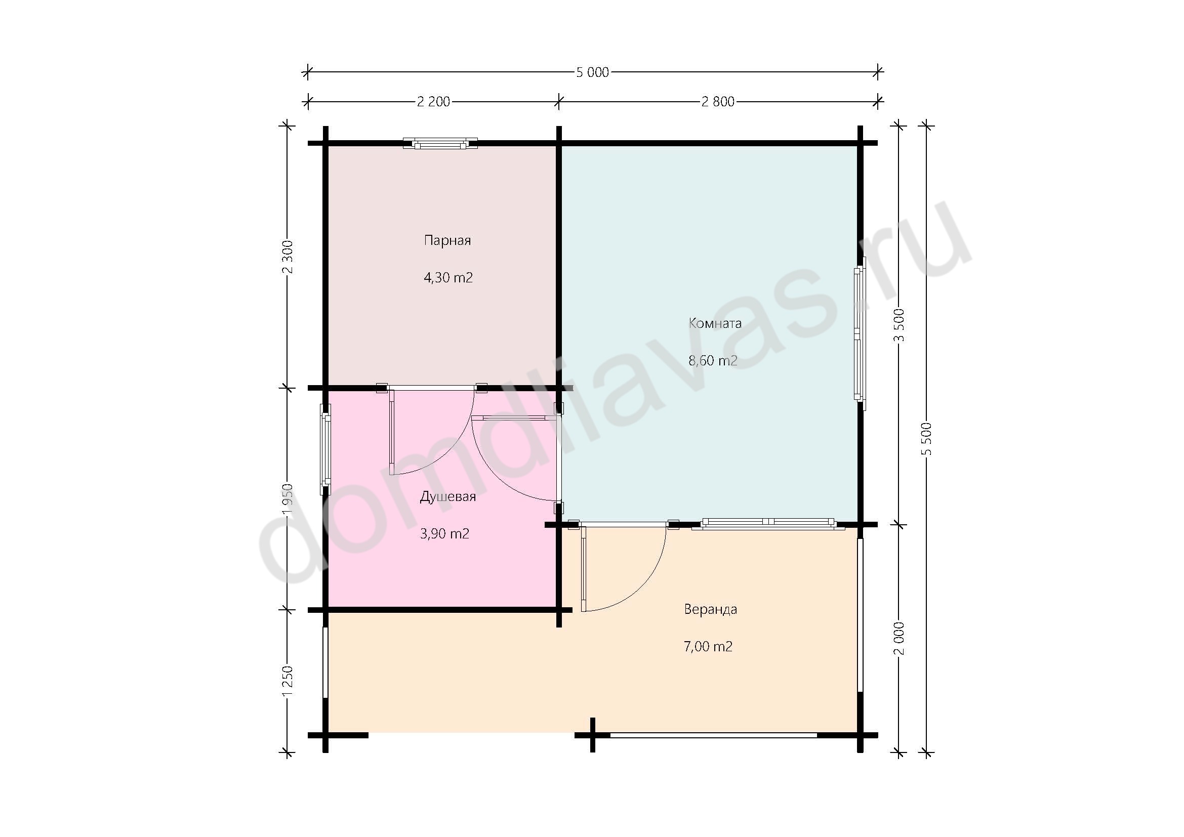 - Внешние размеры 5,0х5,5 м