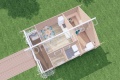 | Внешние стены и перегородки | Формованный брус из сосновых древесных материалов, просушенный в камере, с влажностью от 12 до 14%, размером 45x135 мм. Высота внешних стен составляет 2,16 м (16 венцов), а высота потолков – 2,3 м. Конструкция собирается методом с четырехсторонним замковым соединением и ветровым замком для обеспечения теплоизоляции. |